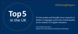 Discover a world of literatures, languages and cultures Expand your horizons. Choose from a range of undergraduate and postgraduate programmes.Undergraduate studyPostgraduate study Subject areas Asian StudiesCeltic and Scottish StudiesEnglish and Scottish LiteratureEuropean Languages and CulturesFilm and IntermedialityIslamic and Middle Eastern StudiesTranslation Studies Life at LLC Find out what life’s really like in our School from the inspiring students who’re living it. QS World Rankings by Subject 2025 The University of Edinburgh is ranked 3rd in the UK for:Arts and HumanitiesEnglish Language and LiteratureModern Languages Globally, we’re in the World Top 15: Arts and Humanities (10); English Language and Literature (7); Modern Languages (13).The Quacquarelli Symonds (QS) World University Rankings are based on research citations and the results of major global surveys of employers and academics. They are International Ranking Expert Group (IREG) approved. Research Excellence Framework 2021 The University of Edinburgh is ranked Top 5 in the UK for research in Modern Languages and in English Literature.As reported in Times Higher Education, the rankings are based on the quality and breadth of our research in Modern Languages and the overall quality of our research in English Literature.They come from the latest Research Excellence Framework (REF 2021) – the UK’s system for assessing the quality of research in UK higher education institutions. Teaching excellence Read about our partnership approach to learning and teaching, and the activities of our award-winning staff. Leading research Find out about our research projects and centres, the impact we've made, and postgraduate opportunities. Plus, listen to Beyond the Books, our podcast giving you a behind-the-scenes look at research and the people who make it happen. About us Our history, culture and valuesOur place in the cityNews and features Contact us Many of us work on a hybrid basis - a mixture of on-campus and digitally.Our working hours are Monday to Friday between 9am and 5pm (UK time).Please email us in the first instance, and we’ll get back to you as soon as we can.Browse our directory of contactsLike us on Facebook │Follow us on Bluesky │Follow us on Instagram │Follow us on LinkedIn This article was published on 2024-08-12