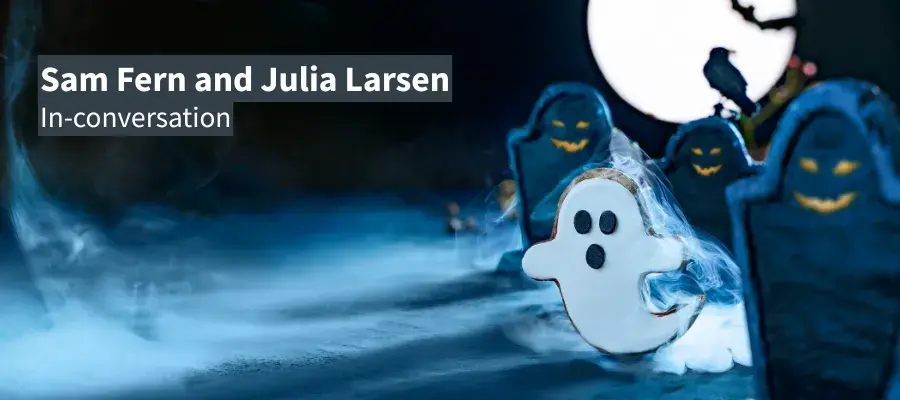 An in-person discussion event between MSc Intermediality alumni and author Sam Fern, and current 3rd year PhD Intermediality candidate, Julia Larsen.